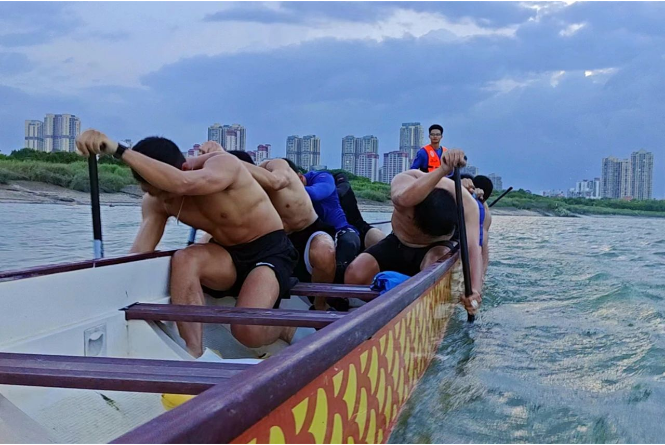 鲤城区浮桥龙舟队老队员与泉州经贸职业技术学院男子龙舟队“模拟对抗”