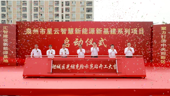 10月20日上午,鲤城区举行泉州市充电猫能源科技有限公司揭牌仪式及智慧新能源新基建系列项目启动仪式。泉州市人大常委会副主任、市招商办主任高向荣,市金控集团董事长蔡洪潮,星云智慧(福建)能源科技有限责任公司董事长黄世霖,鲤城区委书记黄辉灿,泉州市招商一局局长、区政协副主席廖艺强,福建星云电子股份有限公司总裁、星云智慧(福建)能源科技有限责任公司董事刘作斌,福建星云电子股份有限公司副总裁许龙飞参加。区政府副区长吴小纲主持仪式。