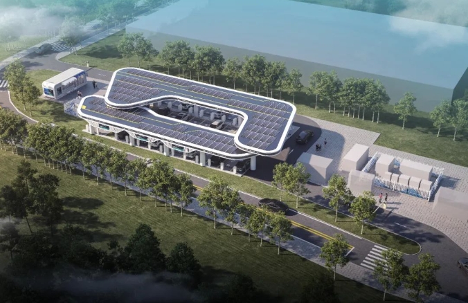 该项目规划面积近2000平方米,设有41个停车位,其中配置180kW直流快充桩36根、7kW交流慢充桩5根,配置0.8MWH储能电池,车位顶棚安装有65kWP光伏板。项目建成后将为周边新能源车主提供完善的安全充电、电池检测等服务。