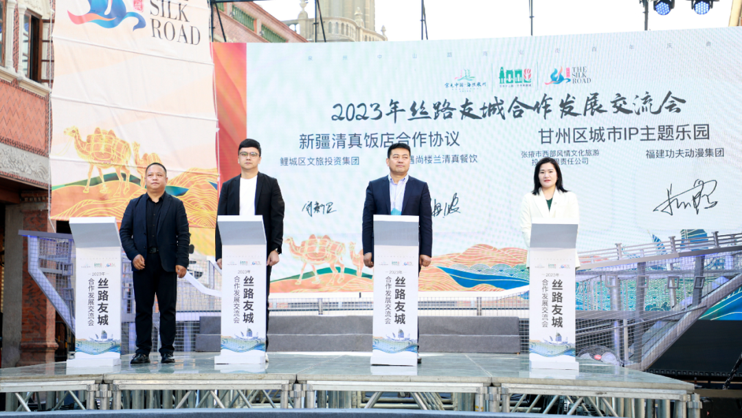 今年来,在部分友好城区推动下,各地企业积极走出去、请进来,先行合作,结出硕果。在随后举行的项目签约仪式上,鲤城区文旅投资集团与遇尚楼兰清真餐饮签订新疆清真饭店合作协议,张掖市西部风情文化旅游投资有限责任公司与功夫动漫股份有限公司签订甘州区城市IP主题乐园,广东省潮州春辉国际旅行社有限公司与福建省润朴文化传媒有限公司签订研学合作协议,陕西省旅行社协会馆校合作专委会、陕西翼起来游学研究所与福建省中泉国际旅游有限公司签订西安研学合作协议。