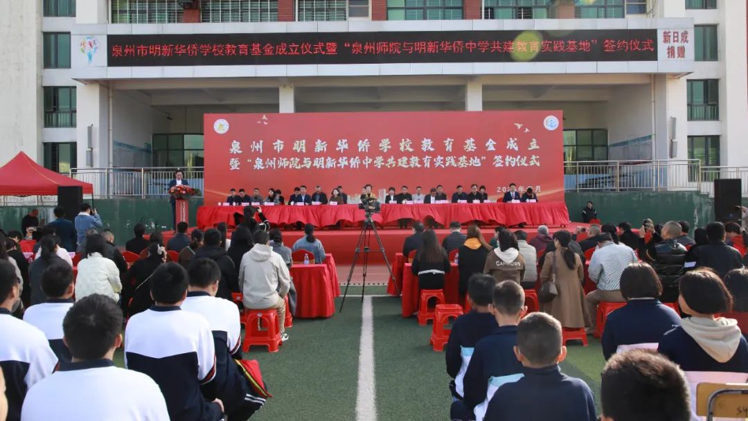 1月3日上午,泉州市明新华侨中学格外热闹,各界嘉宾、校友和学校师生欢聚一堂,共同见证泉州市明新华侨学校教育基金成立,以及明新华侨中学与泉州师范学院共建签约。副区长张剑辉出席仪式。