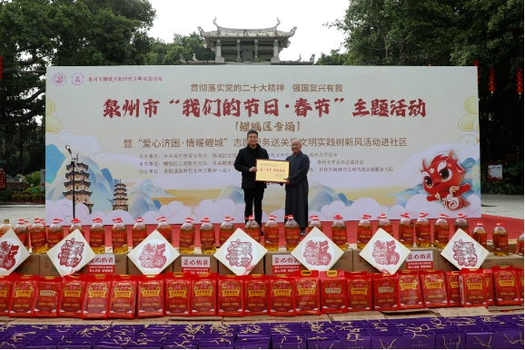此次活动由鲤城区文明委、鲤城区新时代文明实践中心、泉州大开元寺联合主办,旨在充分发挥传统节日在加强公民思想道德建设中的载体作用,以实际行动为有需要的群众送去爱心帮扶和慰问,送上新年的祝福。