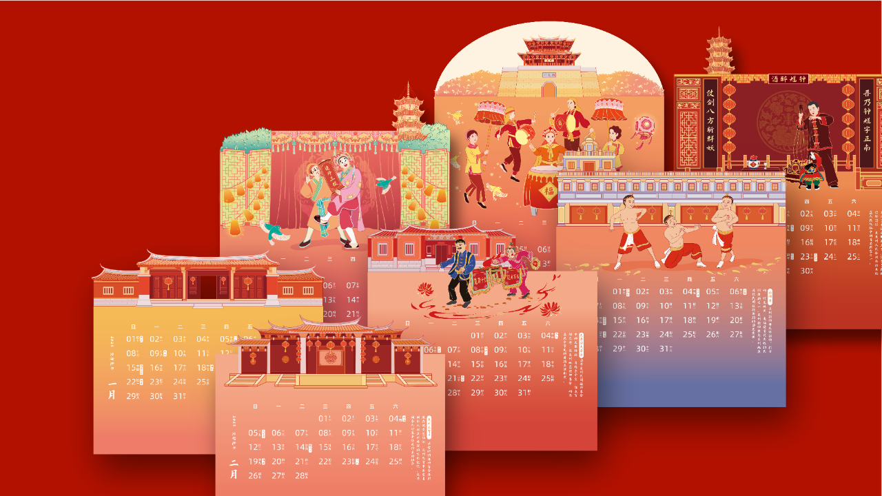 李诗莹创作的《上元有鲤——泉州元宵习俗视域下系列文创产品》日历插画