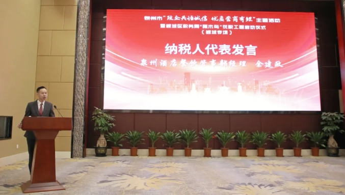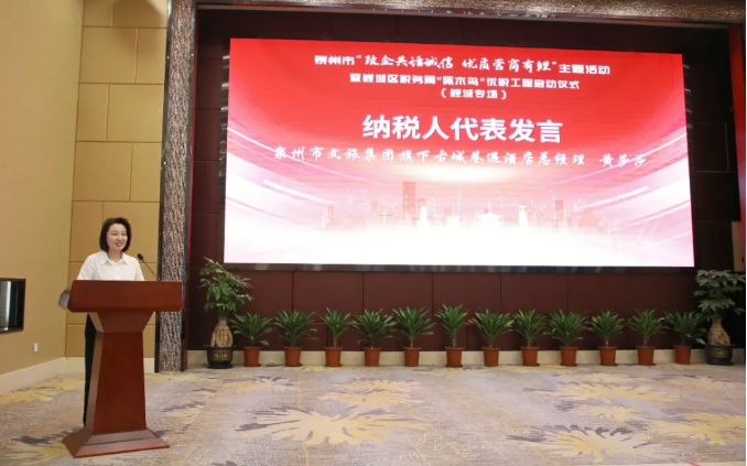 “诚信经营、依法纳税既是企业立身之本,又是履行社会责任,助力社会平稳、健康、可持续发展的使命担当。”活动现场,泉州酒店餐饮管事部经理余建政、古城巷遇酒店总经理黄莎莎分别上台,就企业发展、诚信经营、营造良好市场环境等方面作分享。