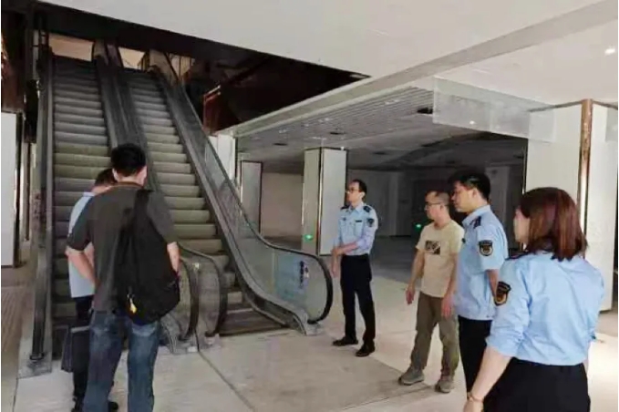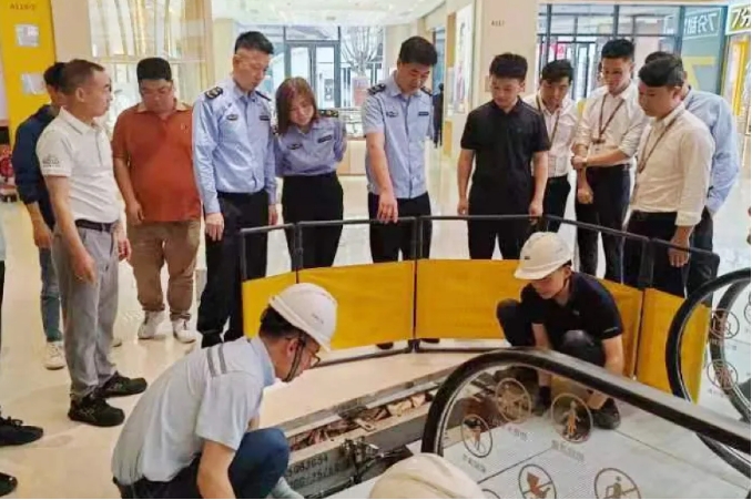 区市场监管局工作人员对自动扶梯检验检测情况进行检查