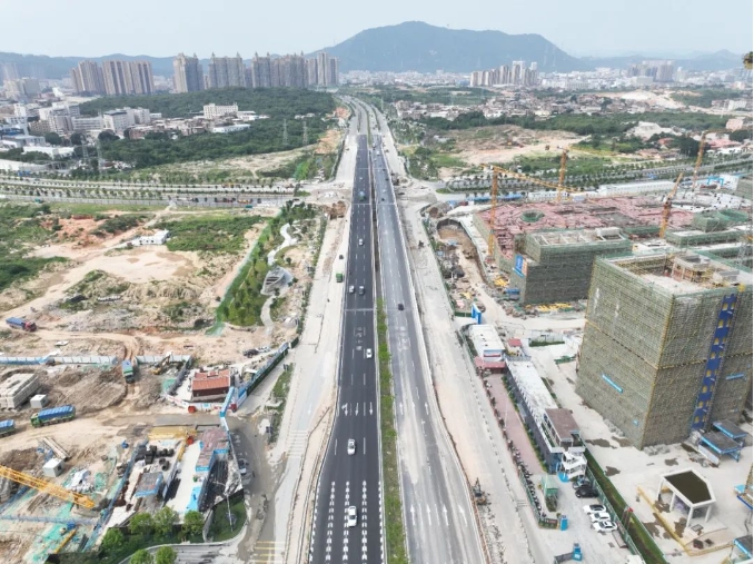 多维路网的建设,对片区交通迭代升级至关重要。繁荣大道跨线桥项目位于站前大道和繁荣大道交叉口,是泉州中心市区中环城快速路的重要节点之一。该项目建成通车后,从江南组团前往北峰组团的车辆可直接上桥跨线通行,无需在路口等待红绿灯。