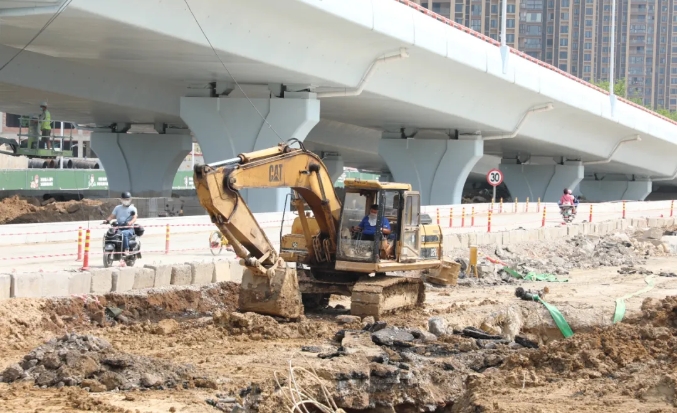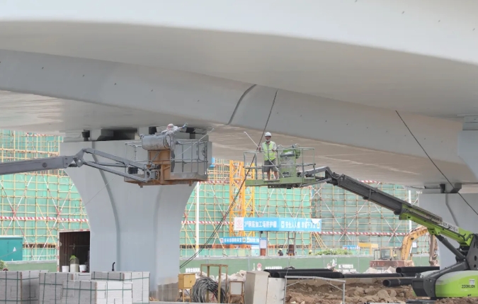 “目前,该项目桥上施工已全部结束,车辆可正常通行,桥下正在进行路面提升和管网接驳工作,预计6月底全部完工。”江南城建集团项目负责人告诉记者,该项目主体桥结构采用箱梁预应力张拉工艺建造,不仅结构稳定性更优,有很好的强度与刚度,而且其适用跨径和弧度更大,兼具美观性。