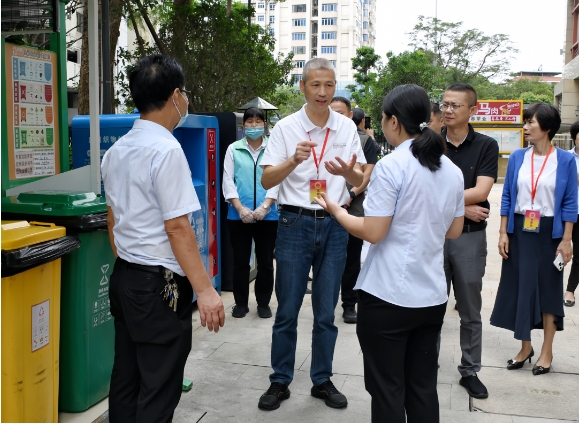 在江南新区繁荣大道和江南城建集团,调研组一行现场察看环卫一体化道路作业过程、环卫设施设备配置等情况。随后,调研组一行走访源昌江南城、向阳花苑、富临新天地等处,实地了解属地街道、社区环卫一体化工作开展情况,察看各住宅小区垃圾分类主要做法及成效。每到一处,调研组都认真听取相关负责人作工作汇报,并就如何进一步高标准推进、高质量落实环卫一体化工作展开深入交流。