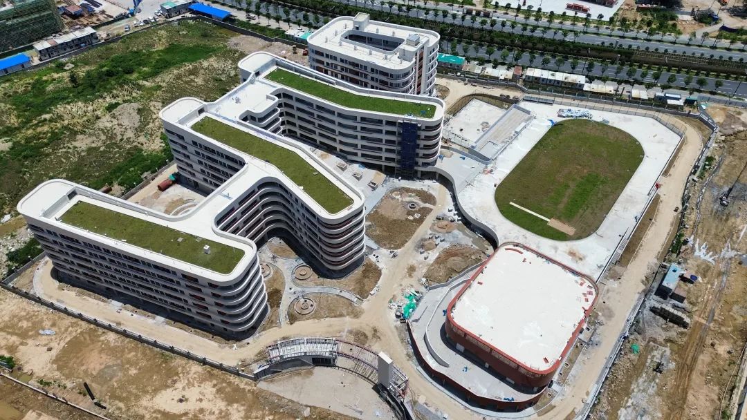 泉州市西隅中心小学坂头校区项目位于鲤城区浮桥街道坂头社区,规划建设4栋多层建筑及运动场等,包括教学楼、体艺馆、综合楼、地下室等配套设施。项目建成后,计划开设36个班级,学位1620个。目前主体结构已全面封顶,配套设施正在紧张施工中,预计年底整体竣工交付。
