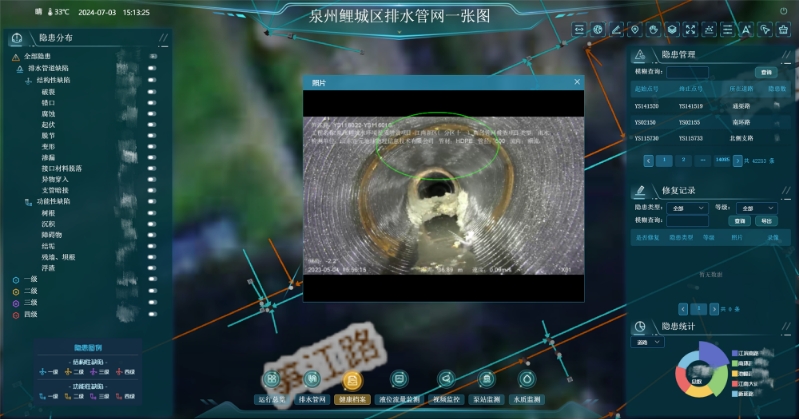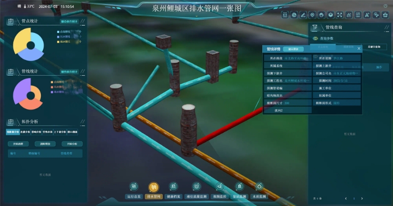 在数据整合方面,该平台依托GIS等技术,构建全面、准确、实时的综合数据库,将排水管网及其附属设施的隐患等要素直观呈现,实现从“一张图看管网”到“一张图管管网”。“数据库为管线整体规划与设计提供了坚实的数据基础,让管线布局更加优化、施工更加精准、管理更加有序。”区城市管理和综合执法局工作人员介绍,他们仍在持续更新管线数据,确保数据完整、真实,以此推动排水系统稳定运行。