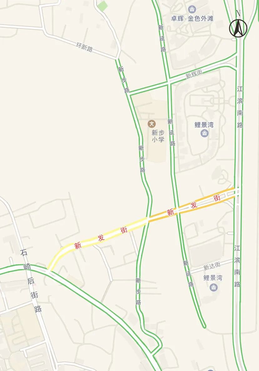 新发街:在原有基础上向西延伸了290米至浮桥街,现全长530米,东起江滨南路,西止浮桥街。