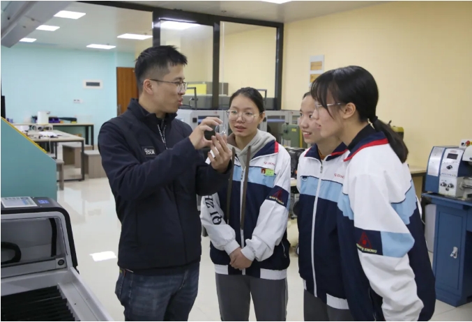 走进泉州七中数字文化创意中心作品展厅,《家乡一台戏—基于人工智能的多维度舞狮表演》《传统文化的传承—可编程的人机互动木偶》……各式各样的研究课题及成品展示让人大受震撼。而在展厅旁的教室内,3D打印机、亚克力激光打印机、金属雕刻机、机床等器械一应俱全,俨然一个小小的加工中心。