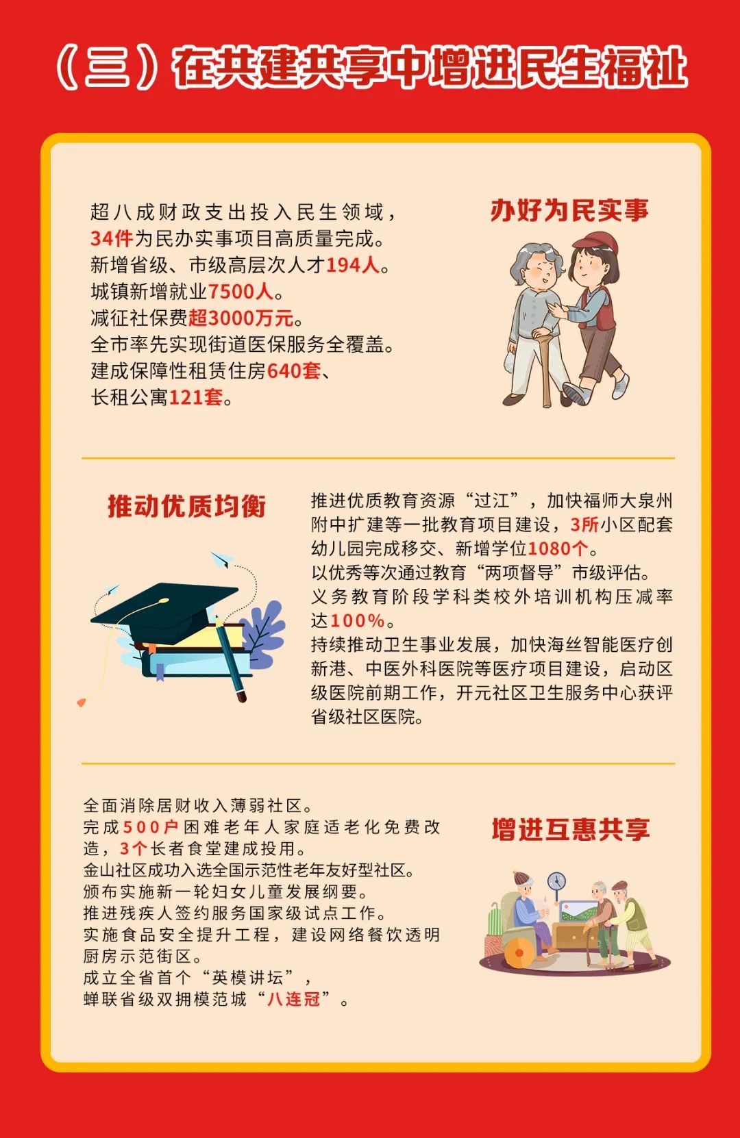 全面发力“四型经济”,支持绿色型经济发展,围绕建设新能源新材料产业创新示范基地,规划建设泉州市智能产业园。大力发展创新型经济,新增培育国家级高企18家、市级以上科创平台5个,企业研发投入增长20%以上。加速服务型经济聚集,规划建设鞋靴数智电商经济区、外贸产业园、家政服务产业园,整合提升汽车服务产业。加快向总部型经济进军,提速建设滨江总部经济区、建筑产业园等载体。
