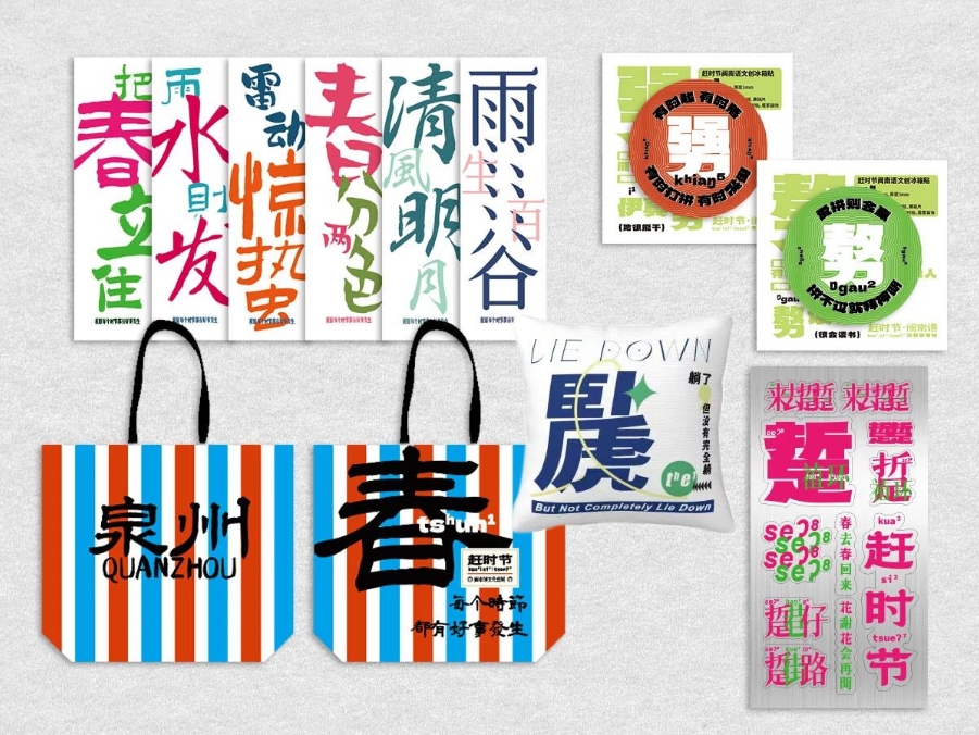 (节气书签、节气贴纸、闽南语文创冰箱贴、闽南语文创抱枕、赶时节编织袋)