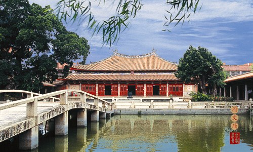 泉州府孔庙位于市区中心、百源川池西畔。现存占地10700平方米,是泉州古代文化教育的殿堂,也是泉州现存大型宋代建筑之一,在全国上千座孔庙里是罕见的,有很高的科学、艺术和历史价值。大成殿为孔庙的主体建筑、陈列有古代祭孔礼器、乐器及泉州历代名人遗著、遗物等。是了解泉州古代文化教育的珍贵实物资料。泉州府孔庙列为省级文物保护单位。