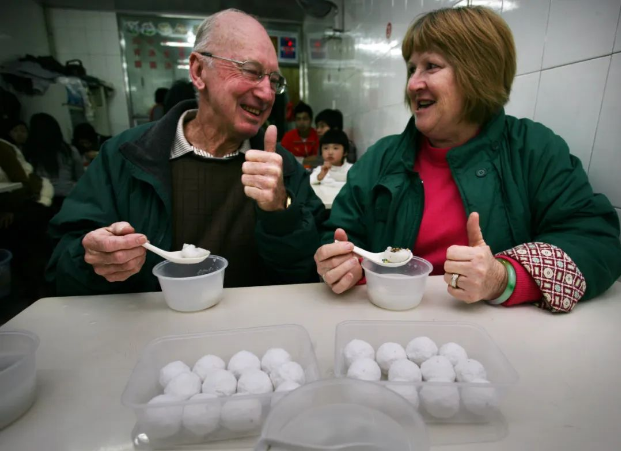 外国人点赞的元宵圆(陈英杰 摄)