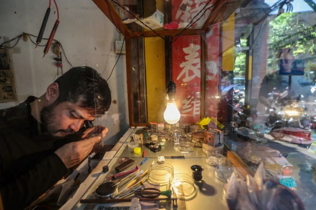 修表匠专心致志修着手表(陈英杰 摄)