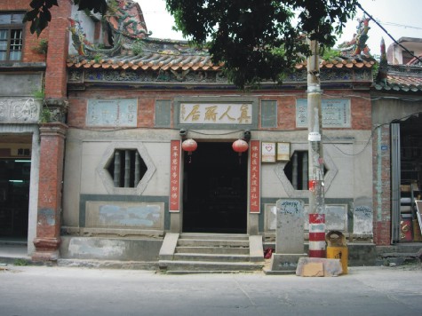 花桥慈济宫临街而立,宫地比街面略高数尺。宫前有一方泉州市人民政府竖立的石碑,标明此处为市文物保护单位。驻足山门前,明代泉州大书法家张瑞图手书的“真人所居”四个大字跃然眼前。山门两侧为石墙,左右壁上各开一扇六角石窗。拾阶而上,入门可见一方供香客休憩之用的空地。每年夏季,这里都会设一奉茶处,向香客游人免费供奉药茶解暑。穿过空地,经一小庭院就到了大殿。