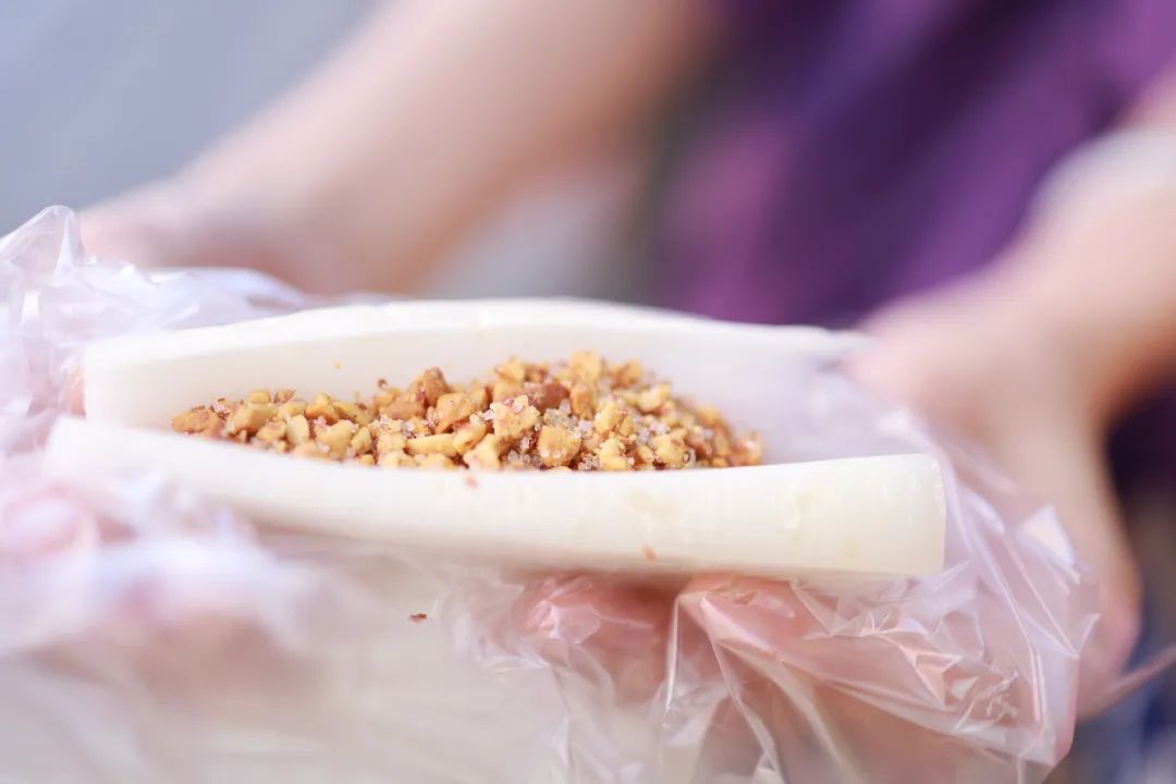 店里特色小吃之一是萝卜夹花生,吃起来口感酸甜爽脆,清凉下火。