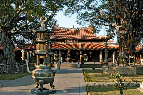 参观【关帝庙】通淮关岳庙为关圣帝君六大祖庙之一,庙内有南宋理学家朱熹和明书法家张瑞图题匾等重要文物,是福建省现存规模最大的武庙。泉州关帝文化作为闽南文化乃至闽台文化重要的一支,为促进海峡两岸民间交流发挥了重要作用。庙内有对联,上联:公平正直入门不拜无妨,下联:诡诈奸刁到庙倾诚何益,警示世人,当以公平正直处事待人。约30分钟。