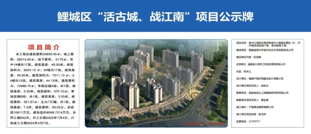作为鲤城区2023年“抓城建提品质”项目之一,锦美安置区二期项目于去年6月开工建设,项目总用地面积13亩,总建筑面积约4.5万平方米,共建设4幢15-17层商住楼。项目建成后将进一步改善片区面貌,提升城市化水平,并可提供安置房源334套,用于回迁安置池峰路、繁荣片区(部分)等项目被征迁群众。