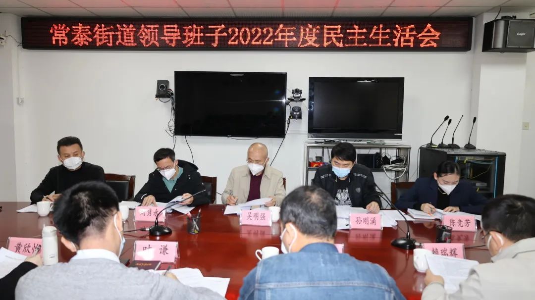 2023年1月13日上午,常泰街道召开2022年度党员领导干部民主生活会,聚焦“六个带头”方面的问题,不跑偏、不散光,触动思想、触及灵魂,以自我革命的勇气和担当对照检查、剖析根源、强化整改。区人大常委会党组成员、副主任吴明强,区纪委常委、监委委员刘隽永,区委组织部副部长、区委非公企业和社会组织工委书记陈竞芳莅临指导,街道党工委、办事处科级干部参加会议。
