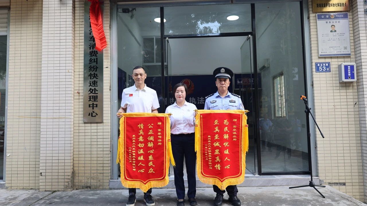 揭牌仪式后,泉州盈众汽车服务有限公司向常泰派出所、常泰司法所赠送锦旗,祝贺处理中心的成立,并表达了对积极配合处理消费纠纷、维护消费者权益的决心。