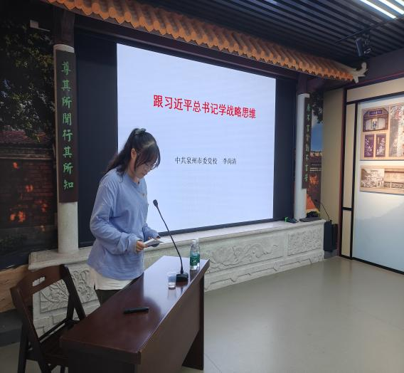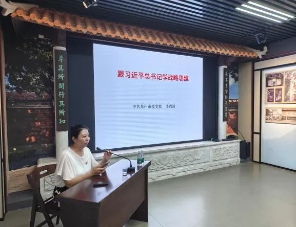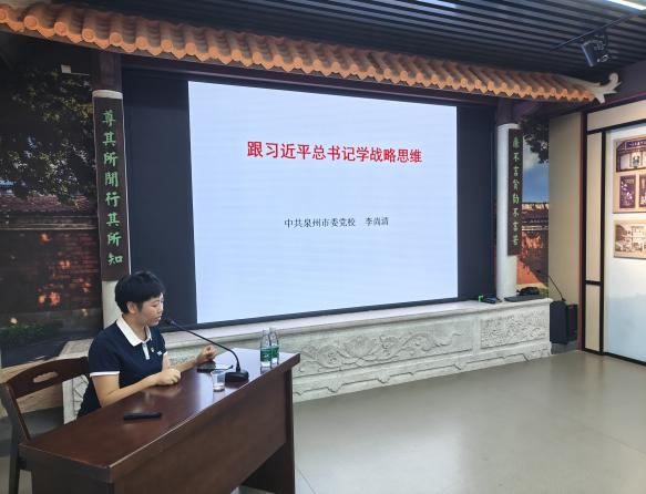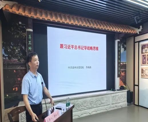 活动还邀请泉州市委党校副校长、副教授李尚清作《跟习近平总书记学战略思维》专题辅导。在孝廉文化讲堂,李尚清副校长从政治性、全局性、长远性、创新性四个角度系统梳理习近平总书记的战略思维,引导全体党员干部增强工作的原则性、系统性、预见性、创造性,切实提高自己的战略思维能力,为党员干部全面学习领会习近平新时代中国特色社会主义思想的精髓要义和实践要求提供了具体指导,为全面推进主题教育扎实有序、走深走实理清了脉络、启迪了思想。