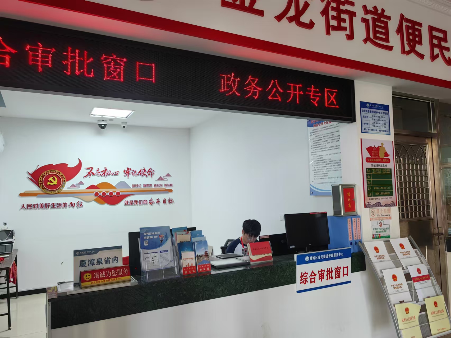 为进一步推进政务公开工作,增加政务公开工作广度和深度,我街道依托于综合便民服务中心打造线下政务公开专区,上墙政务公开专区制度,配备人员、查询电脑、宣传展架等。设置“政府信息公开申请区域”,全方位提供政府信息公开现场申请、“在线申请”等服务;设置“政务公开意见收集簿”,拓宽民意反馈渠道;提供金龙街道办事处法定主动公开文件、政府公报等供群众查阅。通过标准化、便民化服务,打造集“资料查阅、信息查询、申请公开、办事咨询、自助办理”等服务为一体的多功能政务公开专区。