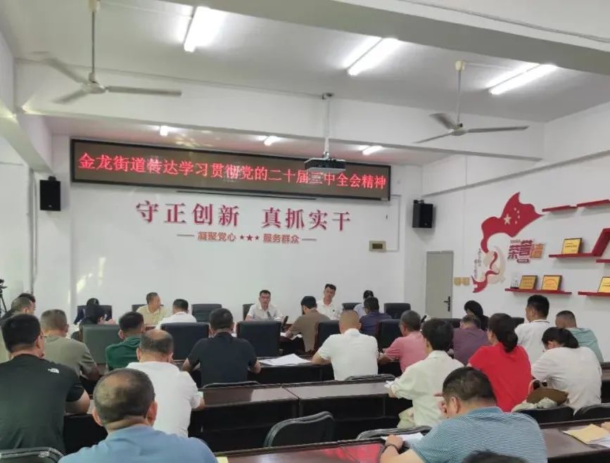 会议指出,党的二十届三中全会是在以中国式现代化全面推进强国建设、民族复兴伟业关键时期召开的一次历史性会议。习近平总书记重要讲话和全会审议通过的《中共中央关于进一步全面深化改革、推进中国式现代化的决定》,吹响了新征程进一步全面深化改革、推进中国式现代化的“冲锋号”,街道上下全体党员干部要深入学习领会习近平总书记重要讲话和《决定》精神,把思想和行动统一到以习近平同志为核心的党中央决策部署上来,立足金龙实际,找准重点工作切入点和着力点,切实抓好贯彻落实,以实际行动坚定拥护“两个确立”、坚决做到“两个维护”。