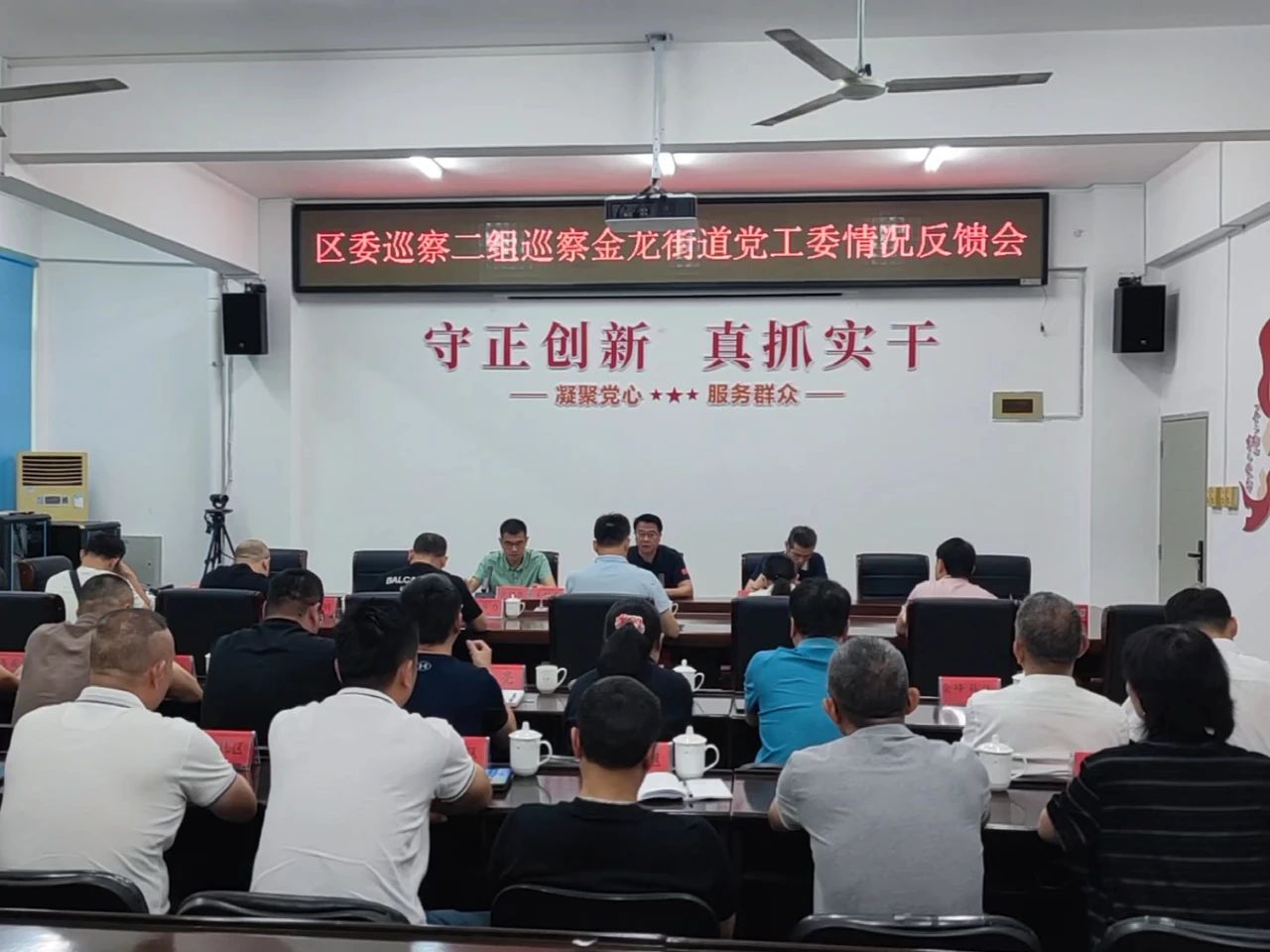 区委巡察二组有关同志,金龙街道党工委领导班子成员出席会议;街道各股室(中心)负责人、部分退休老同志、部分党代表、人大代表、政协委员,各社区主干列席会议。