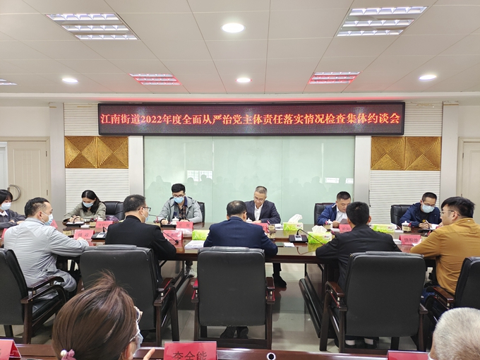 3月13日下午,区委副书记、区长王克思带队到江南街道开展2022年度全面从严治党主体责任落实情况检查集体约谈会。会议由区委统战部常务副部长欧阳春主持。街道党政班子成员、各社区党组织负责人、街道中层干部参加会议。