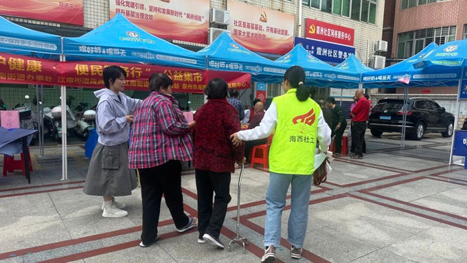 为深入贯彻落实积极应对人口老龄化国家战略,精准对接辖区老年群体多元化、个性化服务需求,11月17日下午,泉州市民政局、鲤城区民政局、江南街道办事处联合江南街道民政服务站、霞洲社区居委会、泉州市海西社工事业发展中心等单位,成功举办“暖冬护健康 便民服务行”公益集市活动。活动以“关爱老人、便民惠民、公益先行”为核心理念,通过整合优质公共服务资源,搭建“家门口的综合服务平台”,切实将民生关怀送到老年群众身边。
