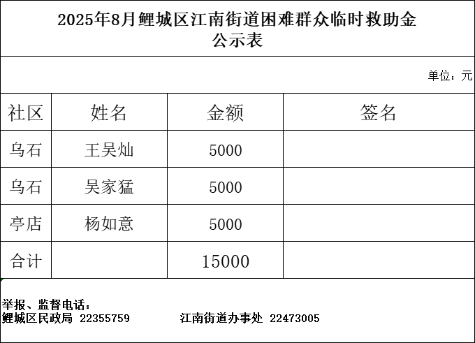 江南街道2025年8月困难居民临时救助金发放