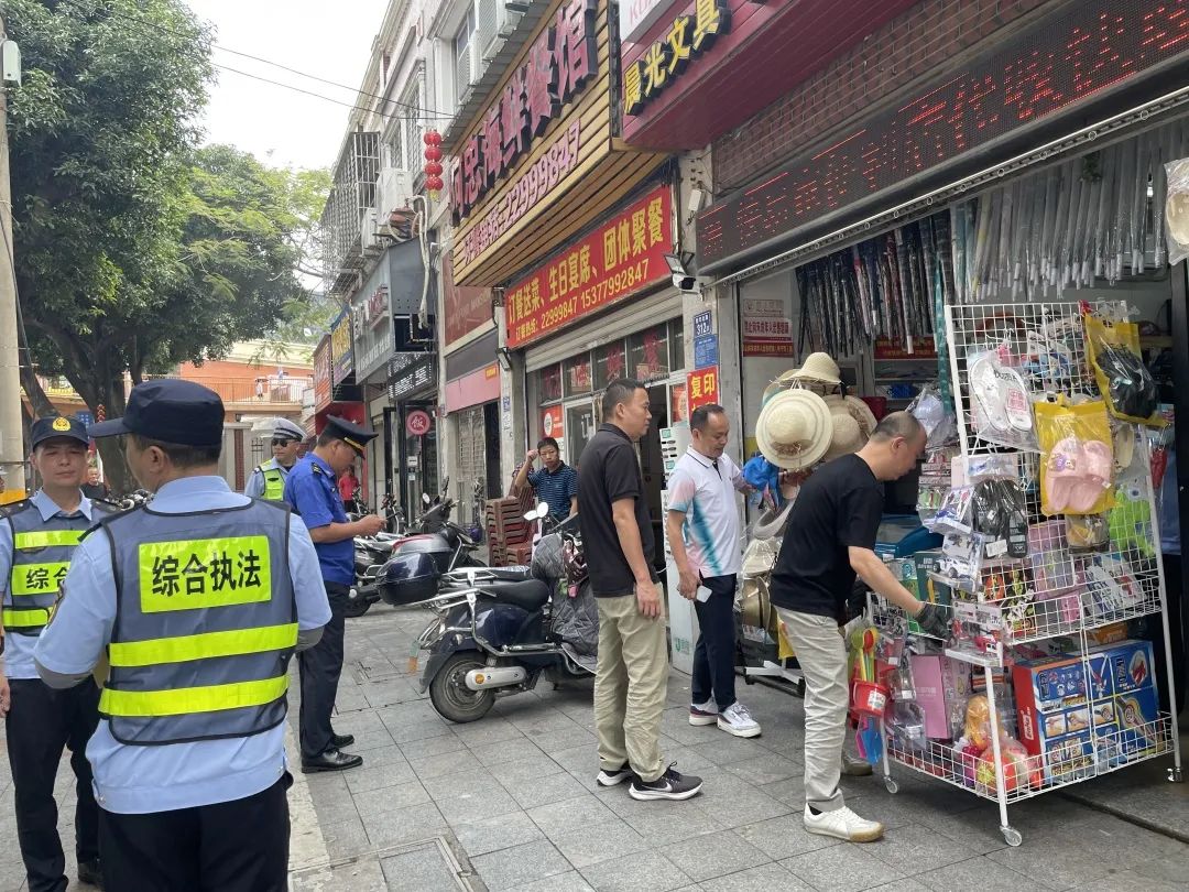 整治市容秩序。对培元中学、第一幼儿园、泉州实验小学等学校周边进行市容秩序、环境卫生集中整治,执法人员坚持以宣传教育和行政处罚相结合的原则,对出店经营的商户耐心教育,当场引导整改,并对拒不整改的商户依法开具市容管理提醒单。