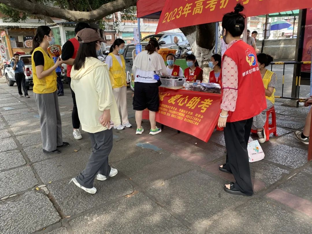 开元街道护考先锋队在泉州一中、培元中学、泉州六中等考点设置“爱心护考”临时志愿服务站,为考生、家长们准备矿泉水、一次性雨衣、扇子等物资,并配合交警开展维护交通秩序、引导有序出入,向周边商家宣传停止使用高音喇叭宣传商品、招揽顾客等,全力维护好考场周边秩序,努力在全社会形成关心、参与、支持高考的志愿服务精神。