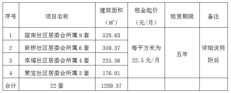隘南、新桥、幸福和聚宝社区居委会所属崇文公寓1号楼的22套公寓整体公开招租报名需注意事项