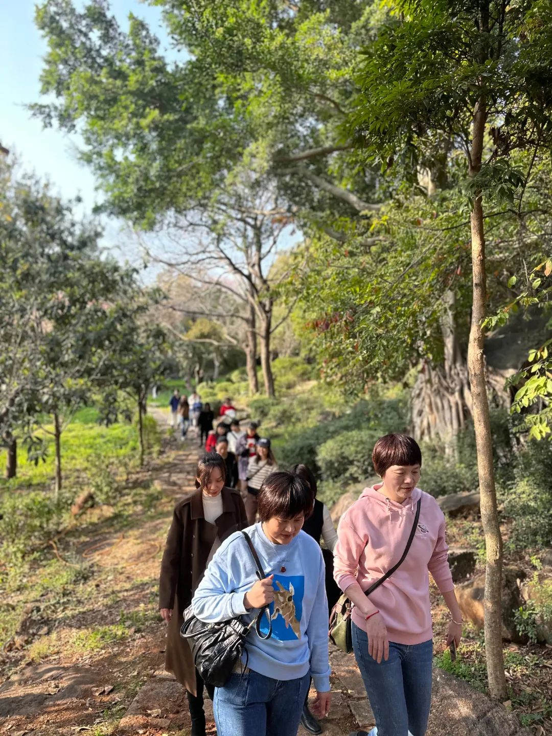 春光正好,和风相迎,一行人精神抖擞地漫步在林荫小道中,一起欣赏沿途的风景,呼吸着春天的气息,时而健步如飞,时而放缓脚步,驻足拍照,一路上欢声笑语,大家尽情感受着集体的温馨与登山的喜悦,暂时忘记了工作的疲惫。