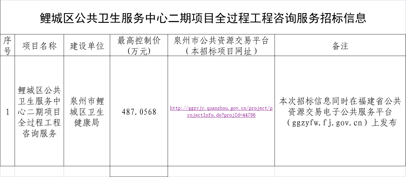 鲤城区公共卫生服务中心二期项目全过程工程咨询服务招标信息