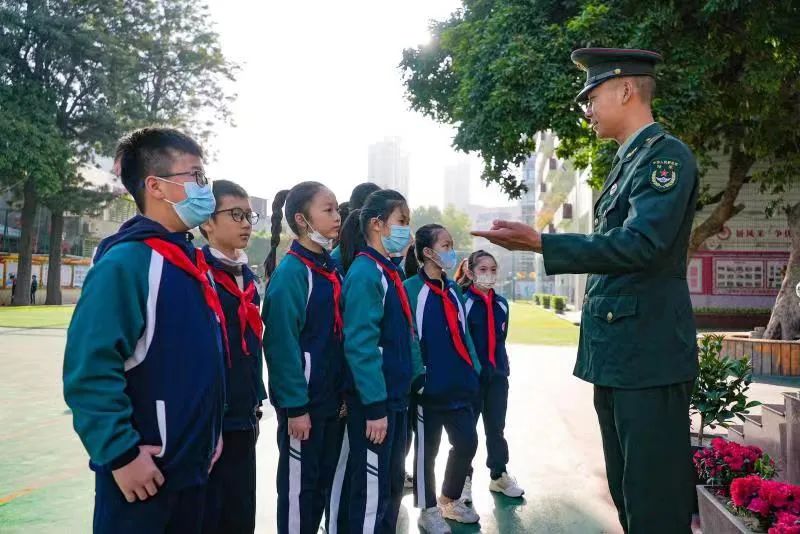 截至目前,已开展少年军校24期,参与学生达2万余人次。每周一节国防教育课、每学期一次主题班会、每年一次军歌嘹亮比赛……学校还将国防教育融入日常教学,精心设置校本课程,组织编写《国防教育读本》《军体拳》《军歌嘹亮》等校本教材,分层次对学生进行国防教育。同时,学校设置国防教育宣传栏、国防知识广播专题节目等,让国防教育遍布校园每个角落。为解决部队官兵的后顾之忧,学校37年如一日,将优先安排部队子女入学作为教育拥军的重要大事,37年来,已有200余名“军娃”从学校毕业。校园里有一座“育才楼”,学校将其中一层设置为干部子女教育管理站,进一步改善他们的学习生活环境。