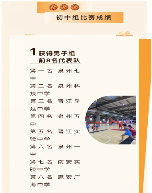 此次比赛,泉州七中凭借着扎实的基础、灵活多变的战术和敢打敢拼的精神,一路披荆斩棘,力克劲敌,以全胜的战绩勇夺得泉州市中小学生篮球联赛(初中组)男子组第一名!