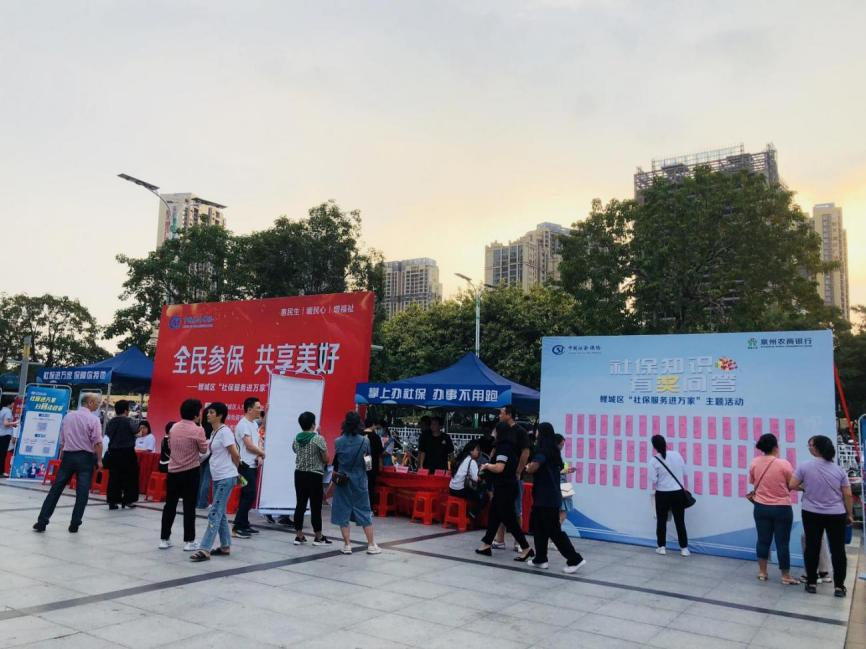 金秋十月,秋高气爽。10月26日下午,鲤城区政务服务中心、区人社局联合江南街道党工委办事处、泉州农商银行鲤城支行在鲤城区新天城市广场开展以“社保服务进万家”为主题的集中宣传活动。活动以宣传贯彻《社会保险经办条例》为契机,结合开展主题教育,发扬“四下基层”优良作风,让更多群众了解社保政策,认同社保惠民措施,提升主动参保意识。