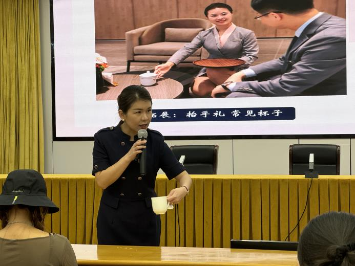培训现场,礼仪老师通过案例分析、情景模拟等授课方式,细致入微地讲授了办公室礼仪、社交礼仪、接待礼仪等方面的注意事项,针对日常工作中大家频繁接触的会务接待与安排、陪同礼仪、行车礼仪、用餐礼仪等环节进行了现场示范和情景模拟,让参训人员感受到礼仪文化在工作和生活中的重要性。