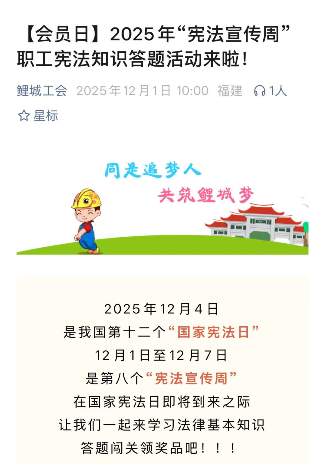 线上,通过开展职工《中华人民共和国宪法》知识有奖答题活动,并依托各街道、部门微信公众号推送《2025大家说宪法》《良法善治 与宪同行》等相关法律知识,实现宣传精准触达;线下,“蒲公英”普法志愿者深入机关、学校、社区、企业、庙会等场所,开展法治宣讲、游园等活动,发放宪法及相关法规宣传资料5000余份。各街道、部门同步联动,区法院举行庄严宪法宣誓,区检察院举办检察开放日活动等。同时,广泛利用户外电子显示屏、宣传栏、公共LED屏等载体资源,滚动播放宣传标语,构建起“全方位、无死角、广参与”的全域普法网络。