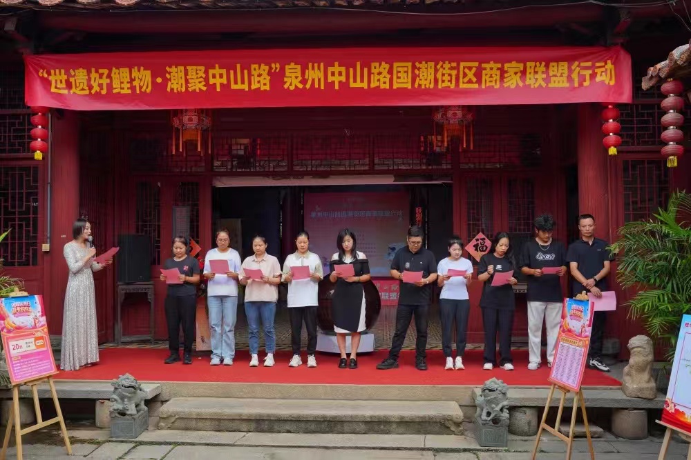 为贯彻落实2024年国潮泉州“焕新消费·焕新智造”系列活动工作部署,推动泉州中山路国潮街区创建,鲤城区商务局联合中山路商圈管理委员会以“世遗好鲤物,潮聚中山路”为主题开展泉州中山路国潮街区商家联盟成立仪式。