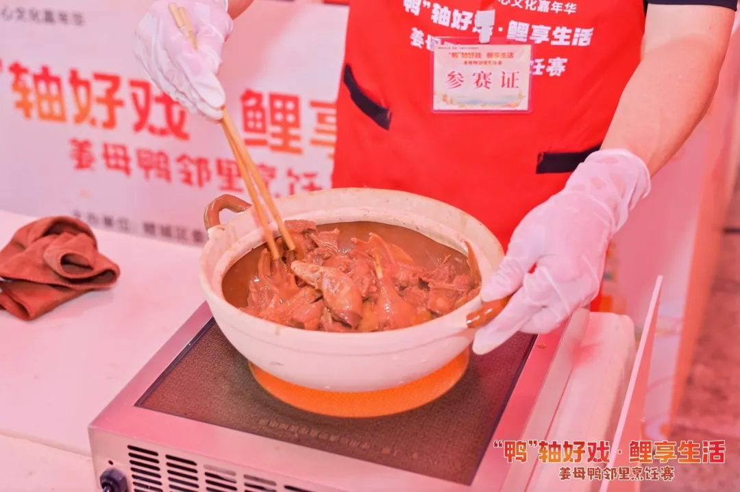 活动现场特设姜母鸭文化展示区,通过展板、图片和实物,生动呈现其历史渊源、工艺精髓与文化内涵。