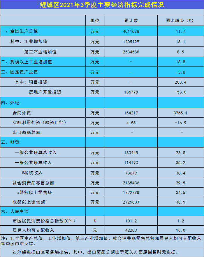 鲤城区2021年3季度主要经济指标完成情况