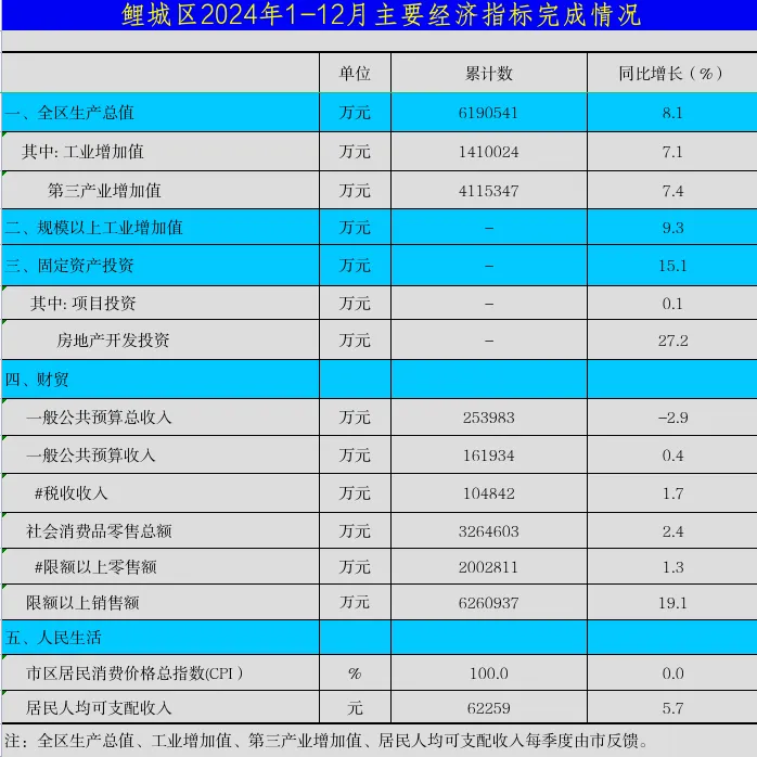 鲤城区2024年4季度主要经济指标完成情况