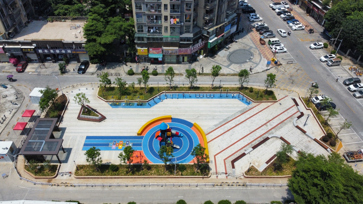 该地块原为摩卡小镇前绿地,整治前植物退化、健身设备老化、黄土裸露影响美观、配套设施缺乏,周边乱停车乱堆放问题也较为严重,景观及功能体验上均无法满足周边居民的休息、活动和健身等需求。2021年鲤城区城市管理局在口袋公园健身摸底工作中,全力策划启动该项目,充分考虑明光社区作为全市“文明社区”和“ 全区关心下一代工作先进集体”的人文资源设定,采用现代化造景手法和多层次空间活动的设置方式,打造集诸多娱乐内容、休闲要素于一体的社区性公园。利用原有体育健身器材及进行合理改造,保留场地功能和记忆;保证绿地比例,渗透宜居城市建设元素;儿童健身游乐设施实现功能复合,服务公园周边人群。