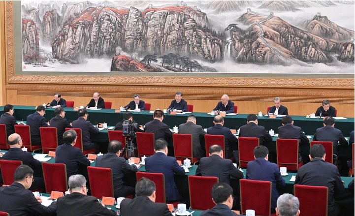 中共中央政治局常委、中央办公厅主任蔡奇出席座谈会,中共中央政治局常委、国务院副总理丁薛祥主持座谈会。